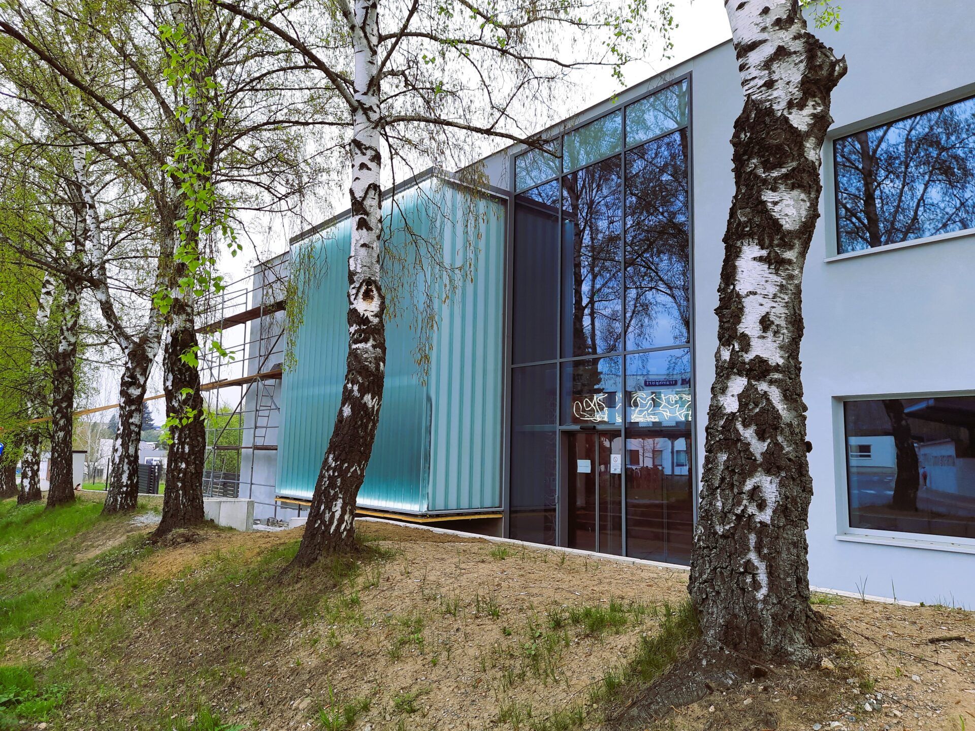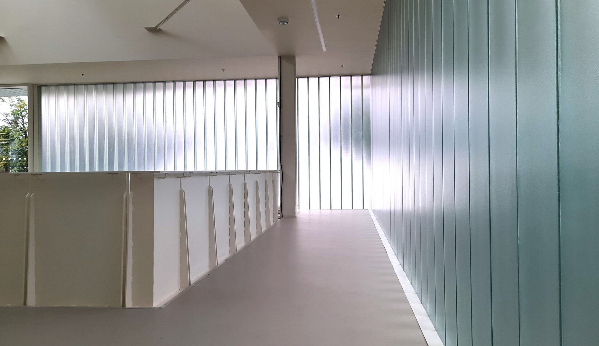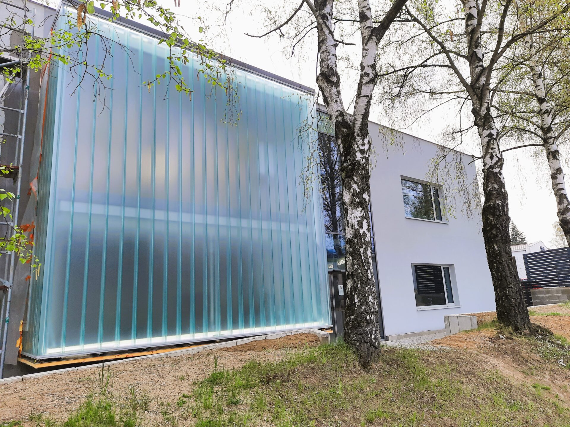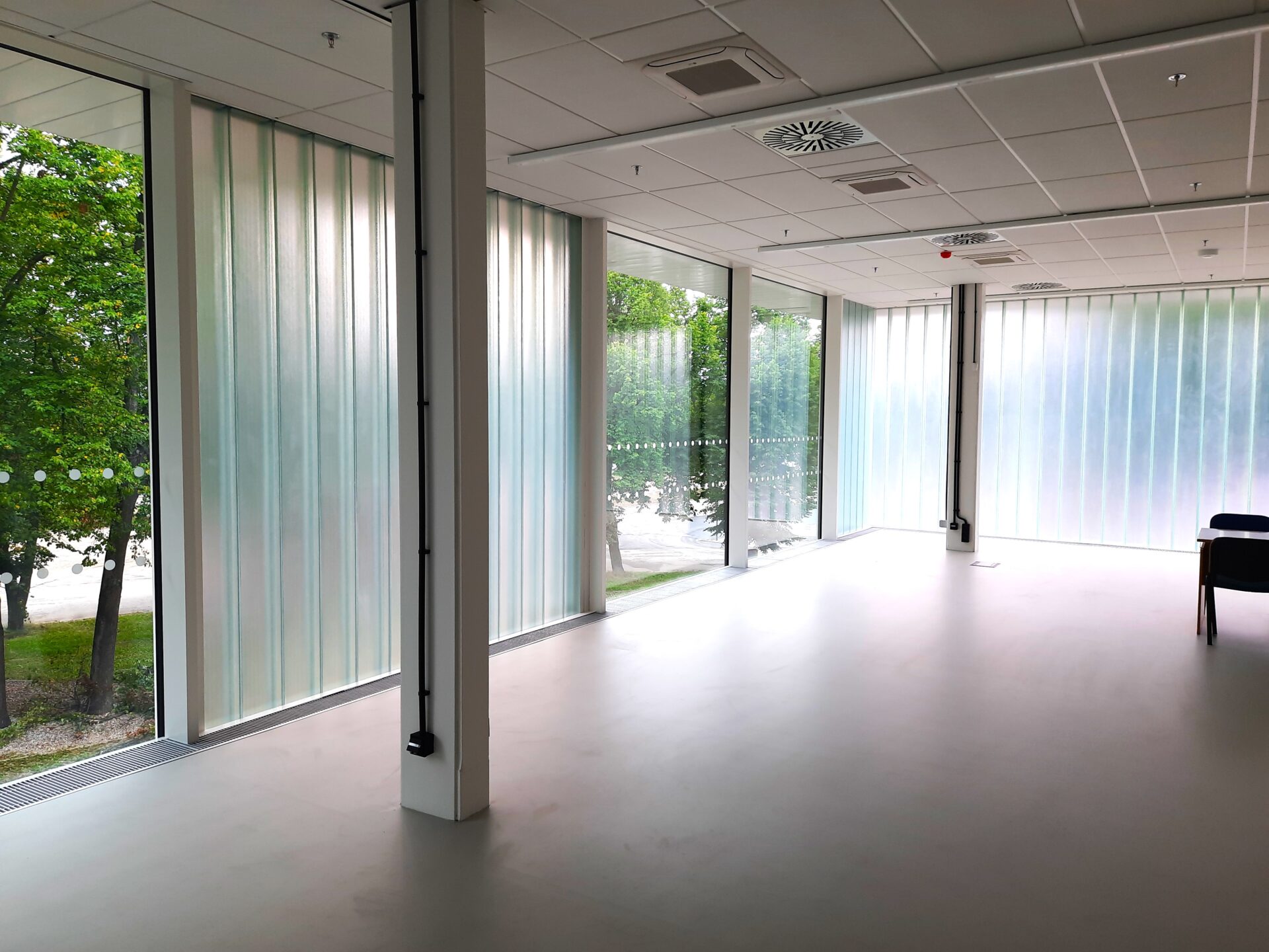 Zasklení je tojité z copilitových tvarovek tvaru U s hloubkou příruby skla 60 mm. Skla jsou ukládána do konstrukce na svislo.