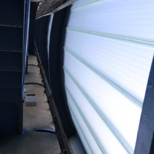 Vodárenská věž Děvín je jedním našich dřívějších projektů. Věž byla postavena 1977 Ing. arch. Karlem Hubáčkem. Vlastní vodárenská věž je tvořena třemi 50 m vysokými, a vzájemně do trojúhelníku spojenými ocelovými válci (tubus 1,8 m). Mezi jednotlivými tubusy jsou prohnuté stěny z profilového skla, které chrání vnitřní schodiště vedoucí až na vrcholek věže.