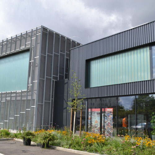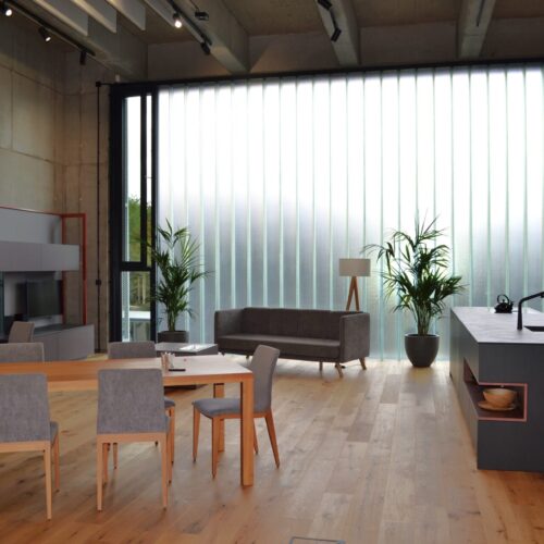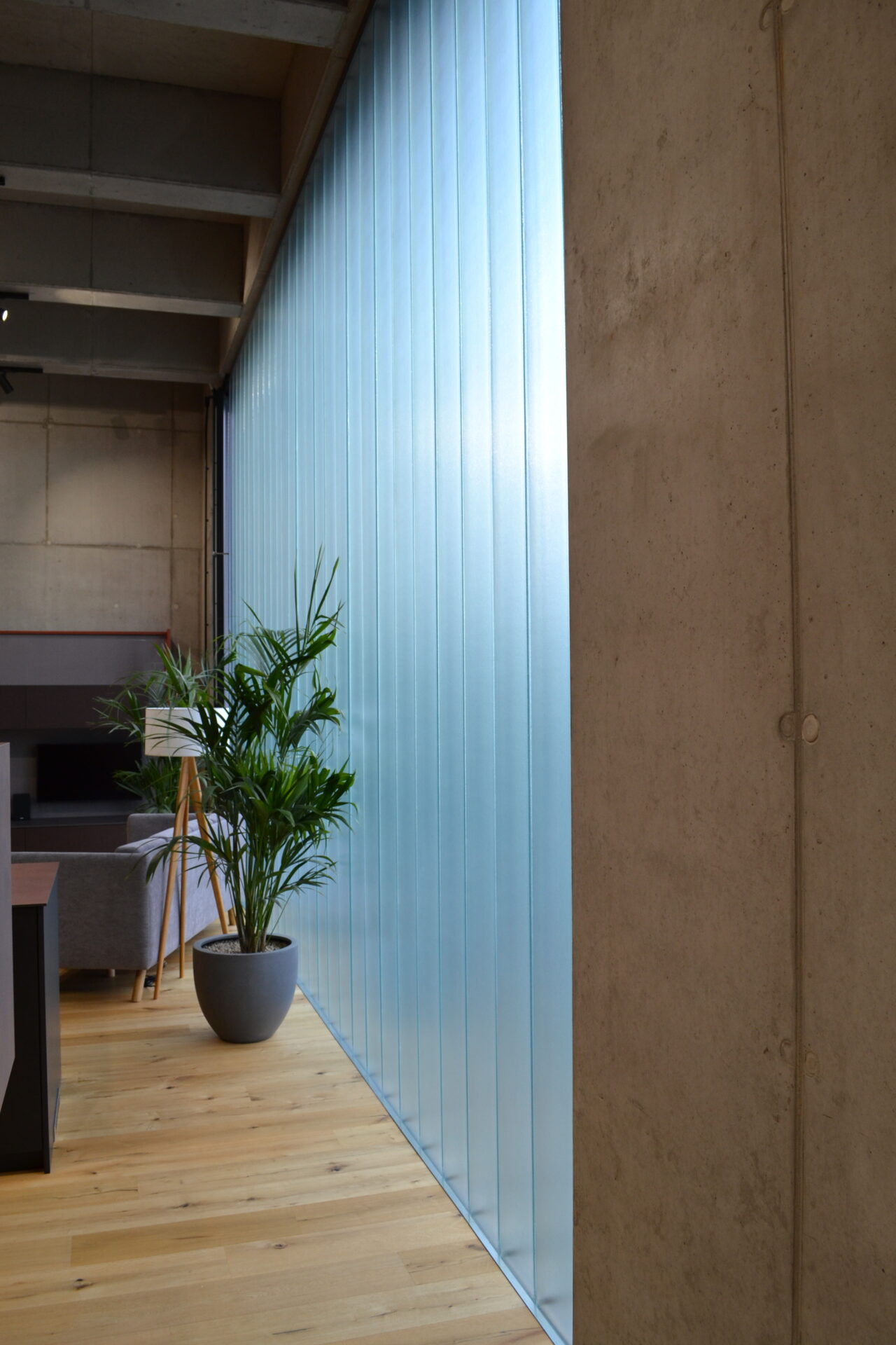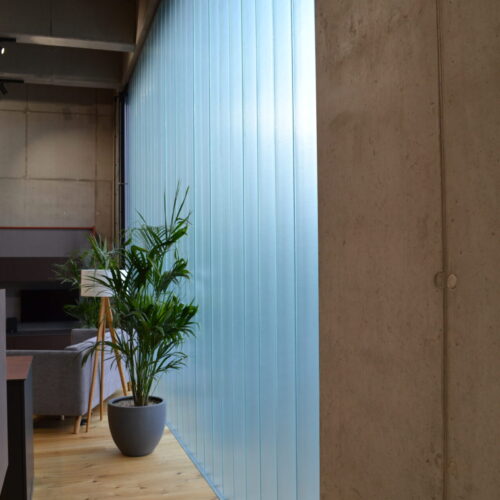 Firma ⇑blum zabývající se nábytkovým kováním chtěla přivést do svého showroom v Praze přirozené světlo bez narušení soukromí klientů. Glass Lines copility byly jasná volba. Investoři zvolili pokovenou variantu trojskla, která ještě zdůrazní přirozenou zelenou barvu copilitů.